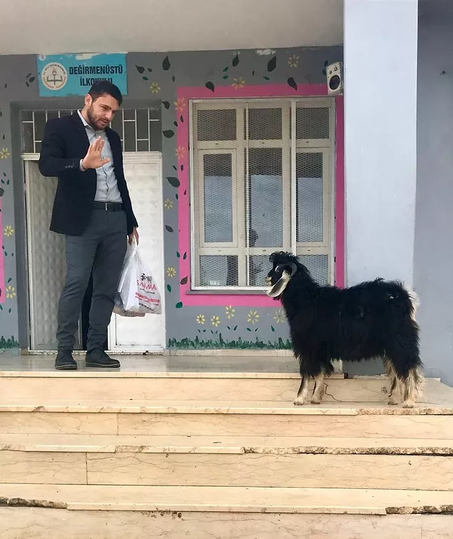 Sanırım burada öğretmenimiz, keçiye okula gelemeyeceğini anlatmaya çalışıyor! 🙂