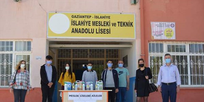 Öğrenciler, okulun kimya üretim atölyesinde ürettikleri temizlik malzemelerini de 10 esnaf ve 30 ihtiyaç sahibi aileye dağıttı.