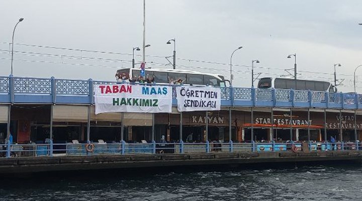 Sendika.org’da yer alan habere göre, Özel Sektör Öğretmenleri Sendikası, son olarak öğretmenlerin düşük ücret dayatmasına karşı taban maaş taleplerini İstanbul’da bulunan Galata Köprüsü’ne astı. Öğretmenler astıkları pankartta, “Taban Maaş Hakkımız” ifadelerini kullandı.