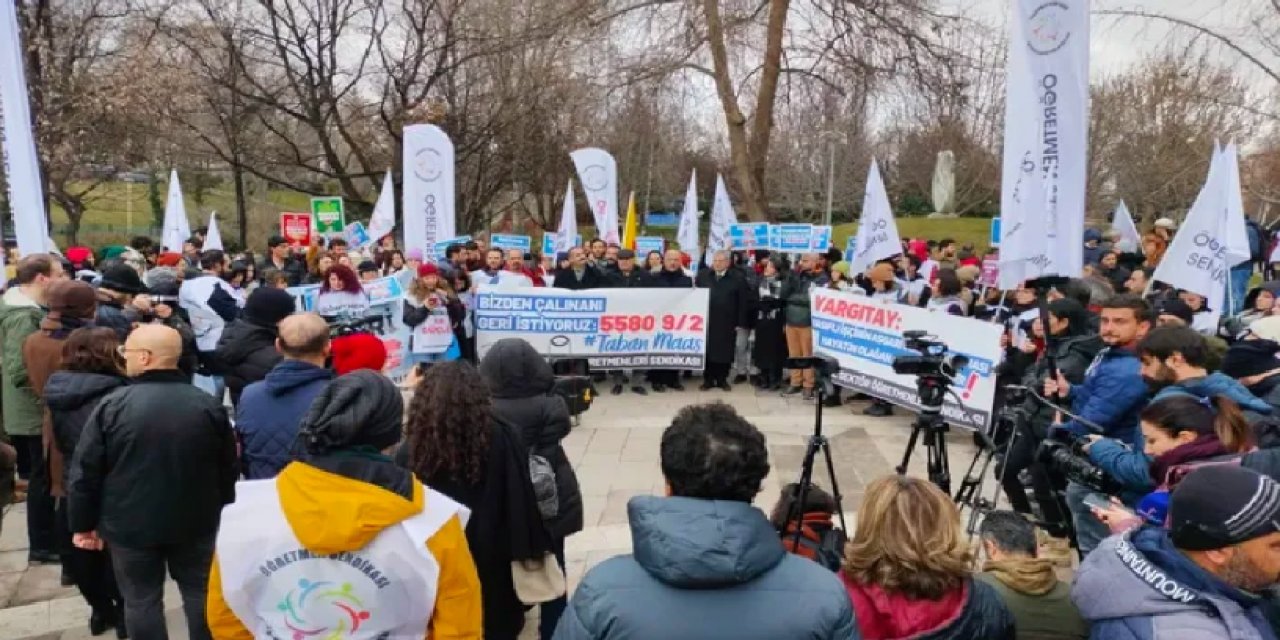 Özel Sektör Öğretmenleri Sendikası’nın “taban maaş hakkı” ve asgari ücretle çalışmamak için bugün Ankara’da bir araya gelmişti. Bakan Yusuf Tekin ile görüşme sağlanmadan eylemlerini sonlandırmayacaklarını belirten öğretmenler, yaklaşık 4 saat boyunca Meclis önündeki Milli Egemenlik Parkı’nda bekledi.