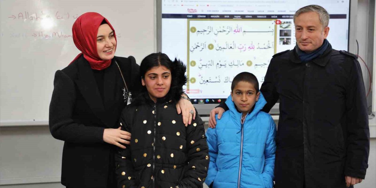 İlhan kardeşleri Cemil Meriç Ortaokuluna getiren Koç, kardeşleri kendi eliyle eğitim hayatlarına tekrar devam edecekleri sınıfa yerleştirdi.