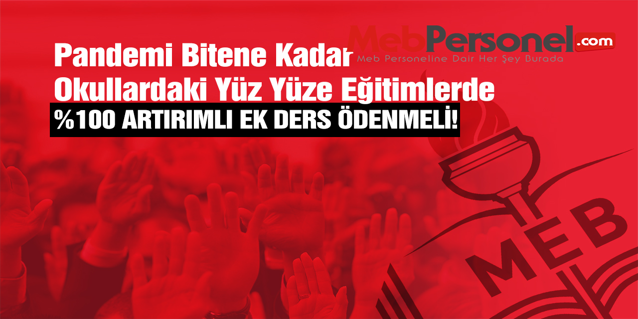 Salgın tamamen geçene kadar, okullarda yapılan yüz yüze eğitimlerde ek ders ödemeleri belirlenen miktarların %100 artırımlı ödenmesi isabetli olacaktır.