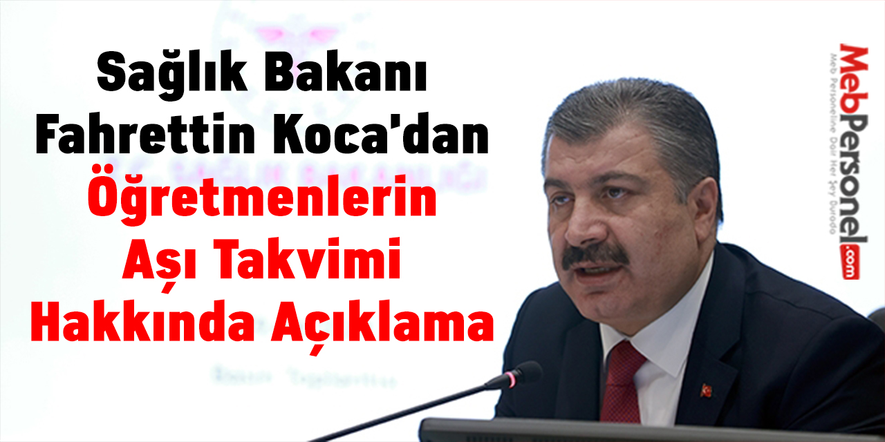 Sağlık Bakanı Fahrettin Koca şu ifadeleri kullandı: ”Yüz yüze eğitime geçecek, özellikle ilköğretim okulları için MEB’den listeleri almış olduk. Muhtemelen ay sonuna doğru öğretmenlerimizi de, özellikle eğitim başlanacak sınıflar için söylüyorum, aşılama takvimi başlamış olacak.”