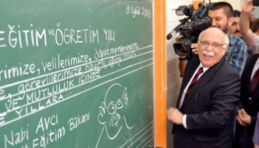 Okul öncesi sınıfların ardından ilkokul birinci sınıfları da gezen Avcı, bir sınıfta tebeşirle tahtaya yazı yazdı. Bakan Avcı tahtadaki yazıda şu ifadeyi kullandı: “2013-2014 eğitim ve öğretim yılının bütün öğretmenlerimize, öğrencilerimize ve görevlilerimize hayırlı uğurlu olmasını temenni ederim.” Yazının altına adını yazan Avcı, tahtaya bir de kendi karikatürünü çizdi. Kendi karikatürüne bir süre gülen Avcı, daha sonra cep telefonu ile yazdıklarını ve çizdiği karikatürün fotoğrafını çekti.