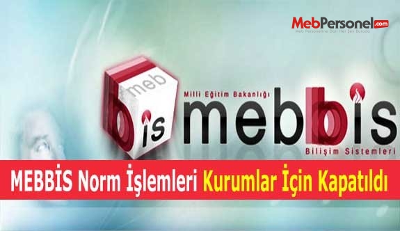 Aşağıdaki takvim gereği MEBBİS üzerinde Norm İşlemleri ekranlarında işlem yetkileri kurumlar için kapatılmıştır.