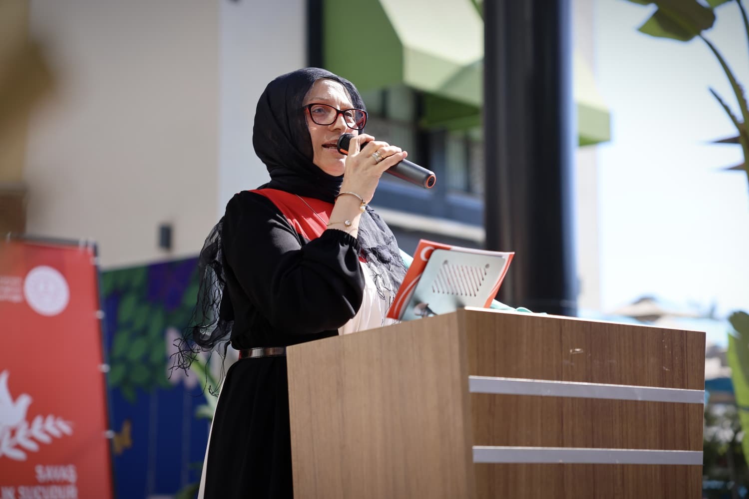 Mersin İl Millî Eğitim Müdürlüğü tarafından Gazze’de aylardır süren bombardımanlarda katledilen binlerce çocuk ve Filistin halkının özgürlüğüne destek vermek amacıyla anlamlı bir etkinlik düzenlendi. Etkinli Filistin Özgürlük müzikleri ile başladı. Programda katılımcılara seslenen İl Millî Eğitim Müdürü Fazilet Durmuş: “Ebabiller konar yüreğime ansızın Gözümde yaş avuçlarımda hüzün. Bizde kuşlar filleri yener oğul! Havada Aksa kokusu var bugün. Tevhidin sesi yaklaşıyor Kenan’dan Özgürlüğün gülleri bir başkadır güzün. Bizde kuşlar filleri yener oğul! Semada umudun gölgesi var bugün. Gönlü Gazze’nin ıstırabıyla yanan, yüreği Filistinli çocukların gözyaşlarında atan kıymetli davetliler, “Eğer zalim ısrarla zulme devam ediyorsa bil ki sonu yakındır. Eğer mazlum da ısrarla direniyorsa bil ki zafer yakındır.” diyor Hz. Ali. Biz de bugün burada sonu yaklaşan Katil İsrail’in Zulmüne karşı zafere yürüyen Gazzeli evlatlarımızın yanlarında olduğumuzu haykırmak için toplanmış bulunuyoruz Gazze yanıyor… Ken’an diyarı, peygamberler yurdu, bereketli topraklar kan ağlıyor. Ve ne acıdır ki, bu yangının tam ortasında çocuklar var. Masum, savunmasız, daha adını yeni öğrenmiş çocuklar… İsrail’in sistematik, örgütlü ve insanlıktan uzak saldırılarıyla yerle bir edilen bu kadim şehirde artık gökyüzüne bakan gözler değil, toprağın altında kalan bedenler var. Bugün Gazze, sadece bir coğrafyanın adı değildir.