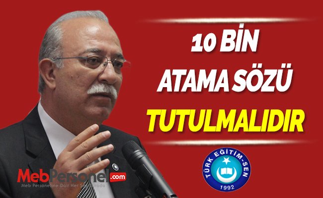Türk Eğitim Sen olarak 10 bin atama sözünü tekrar hatırlatıyor ve milyonlarca insanın gözü önünde verilmiş bu sözün tutulmasını istiyoruz.
