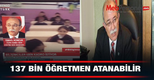 Bengütürk TV Ekranlarında Buyrun Konuşalım programında bu hafta bilişim Teknolojileri Öğretmenleri konuşuluyordu, Bilişim Öğretmenlerine destek olmak için canlı yayına telefonla bağlanan Türk Eğitim Sen Genel Başkanı İsmail Koncuk bu yıl 137 bin öğretmen atanabileceğinin de müjdesini verdi.