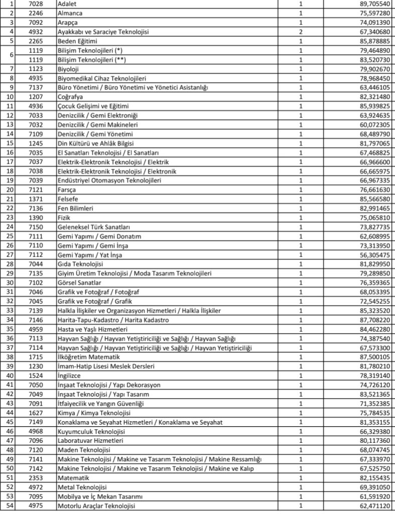 tıklayınız.En fazla kontenjan hangi branşlara ayrıldı?