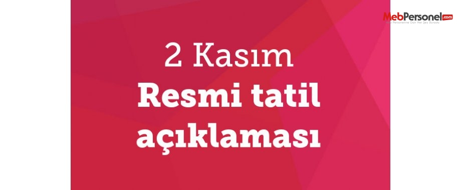 2 Kasım pazartesi günü okllar tatil, seçim sonrasında 2 kasım pazartesi günü okullar tatil edildi , 29 ekim cumhuriyet bayramı tatili böylece 5,5 güne çıkmış oldu. öğretmenler ve öğrencilere 29 ekimden 2 kasıma kadar tatil edildi.
