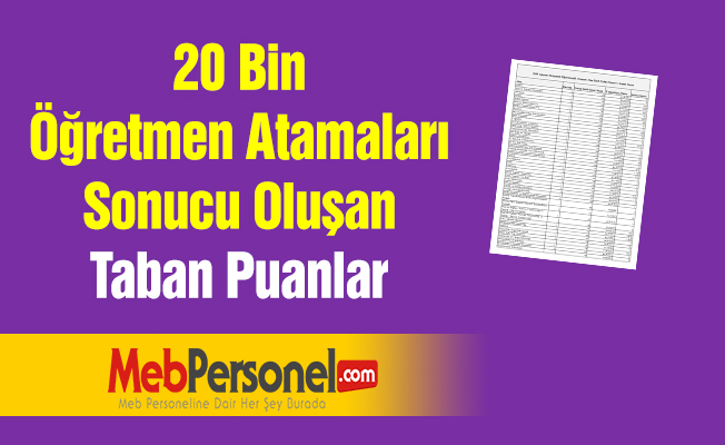 Milli Eğitim Bakanlığı, 20 bin sözleşmeli öğretmen alımı sonucu oluşan taban puanları açıkladı.