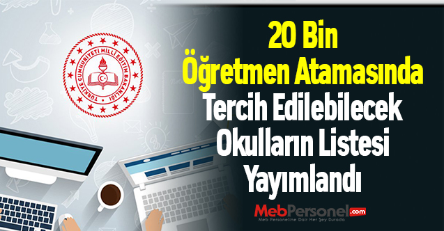 MEB tarafından 20 bin öğretmen ataması yapılacak. Başvurular 28 Ağustos’ta başladı. MEB tarafından öğretmen atamalarında tercih edilebilecek okullar listesi yayımlandı.