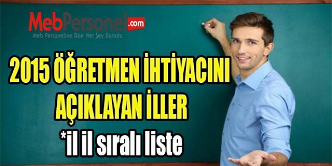 İl il, eğitim kurumu bazında 2015 öğretmen ihtiyaç listeleri il milli eğitim müdürlükleri tarafından yayınlanmaya başlandı.