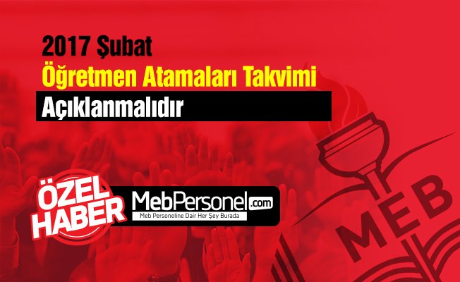 Milli Eğitim Bakanlığında yapılan mevzuat değişikliği ile Şubat ayı artık asıl öğretmen atama ayı olarak belirlenmiştir. Atamalar ise artık sözleşmeli olarak yapılmaktadır. 2017 Ocak ayı gelmiş olmasına rağmen MEB hala daha öğretmen alımı için duyuruya çıkmamıştır. 2017 Şubat ayı öğretmen atama takvimi de belli değildir.