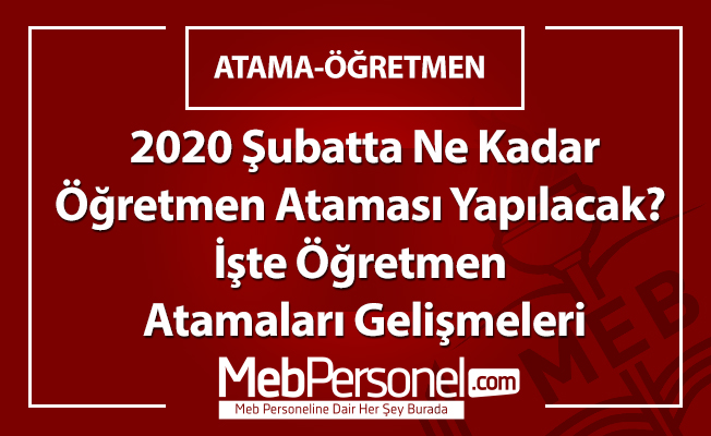 2020 Şubatta Ne Kadar Öğretmen Ataması Yapılacak? İşte Öğretmen Atamaları Gelişmeleri. Atama bekleyen öğretmen adayları 2020 Şubatta yapılacak öğretmen atamalarının ne kadar olacağını büyük bir merakla bekliyor. Bu konuda Sn Bakan Ziya Selçuk’a kadar ulaşan atama bekleyen öğretmen adaylarının talebi en az 60 bin öğretmen ataması yapılmasıdır.