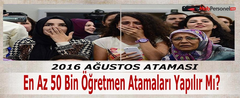 Ağustos Ayında En Az 50 Bin Öğretmen Atamaları Yapılır Mı? Bilindiği üzere 2016 Şubat ayında öğretmen atamaları yapılmış, 30 bin yeni öğretmen adayı bekledikleri özlemini çektikleri kadrolara kavuştu. Atama yapılan öğretmen adayları oryantasyon süreci eğitimi için 2. aşama tercihlerini verip 1 Mart itibariyle göreve başlayacaklar.