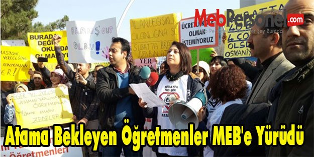 Maliye Bakanlığı önünde toplanan ve kendilerini “Ataması Yapılmayan Tüm Branş Öğretmenleri” olarak nitelendiren grup adına yapılan açıklamada, ataması yapılmamış 300 bin öğretmenin sesi olarak toplanıldığı belirtildi. Açıklamada, 2014 Eylül ayında 40 bin öğretmen atamasının yapıldığı ancak ihtiyaç fazlası olması, branşlarda aşırı birikmelerin bulunması ve 40 bin atamada branşlar bazında kontenjan dağılımı nedeniyle öğretmenlerin mağdur edildiği iddia edildi. Milli Eğitim Bakanlığı’ndan branş öğretmenlerinin mağduriyetinin giderilmesi için Şubat’ta en az 40 bin, Haziran’da en az 40 bin olmak üzere toplam 80 bin branş öğretmeni ataması talep edildi.
