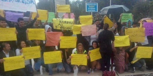 Atatürk Parkı’nda toplanan ve kendilerini “Atanması yapılmayan branş öğretmenleri” olarak isimlendiren grup, “Şubatta 40 branş öğretmen atansın”, “Ver kadroyu al 3 çocuğu”, Branşımı kaybettim hükümsüzdür” gibi dövizler açarak yapılan öğretmen atamalarını protesto etti.