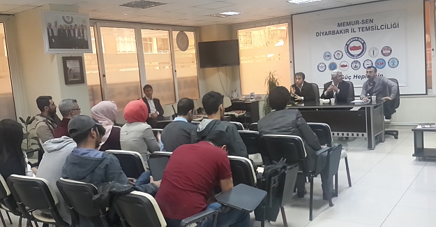 Şube Sosyal İşler Başkan Yardımcısı Recep GÜNEŞ, Eğitim-Bir-Sen Diyarbakır Şubesi olarak sizden aldığımız dosyaları gerek merkezimize ve gerekse ilimizde gerekli yerlere ileteceğini belirterek, “Dünyanın her yerinde olduğu gibi, Türkiye’de de eğitimin temel taşının öğretmenlerdir. Eğitimde çözüm bekleyen sorunlar umuyorum ki Bakanlık nezdinde atılacak adımlarla kısa sürede çözülecektir. Son yıllarda bakanlık birkaç branşa ağırlık vermekte, onlarca branşı göz ardı etmektedir. Atama yapılırken bakanlık birkaç branş yerine bütün branşlarda az da olsa öğretmen alımı yapmalıdır Atama bekleyen tüm öğretmenlerimizin bir an önce görevlerine başlamalarını çok istiyoruz. Bu uğurda öğretmenlerimizin her zaman yanındayız ve onları destekliyoruz” şeklinde konuştu.