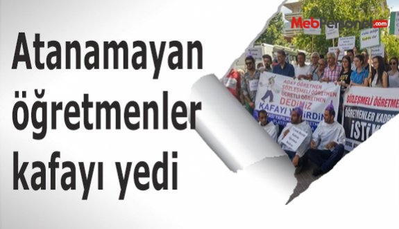 Bursa’da atanamayan öğretmenler, deli gömleği giyip, kafalarına huni takarak eylem yaptı.
