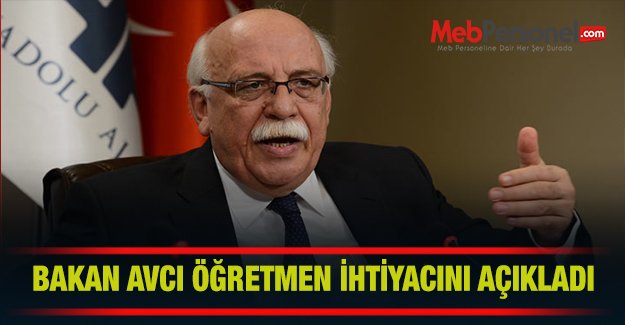 Milli Eğitim Bakanı Nabi Avcı, ideal koşullarda 115 bin 420 öğretmene ihtiyaç olduğunu söyledi.