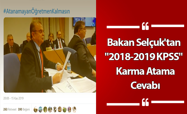 Bakan Selçuk’tan “2018-2019 KPSS” Karma Atama Cevabı. Bakan Selçuk Meclis komisyon bütçe görüşmelerinde karma atama 2018-2019 kpss ile ilgili soruya cevap verdi. İyi Parti Milletvekili Süleyman Girgin’in “Kimseyi mağdur etmeden atama için nasıl bir çözüm üreteceksiniz? sorusuna Bakan Selçuk: İki hafta içinde karar verilecek. diye cevap verdi.