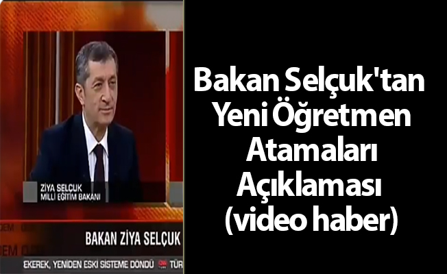 Bakan Selçuk’tan Yeni Öğretmen Atamaları Açıklaması (video haber) Bakan Selçuk dün akşam katıldığı canlı yayın programında öğretmen atamaları ile ilgili soruyu da cevaplandırdı. Bakan Selçuk 20 bin öğretmen ataması için duyuruya çıkıldığını belirterek atamaları imkanlar ve ihtiyaçlar ölçüsünde devam edeceğinin sinyalini verdi. İşte Bakan Selçuk’un öğretmen atamaları ile açıklamasının videosu: