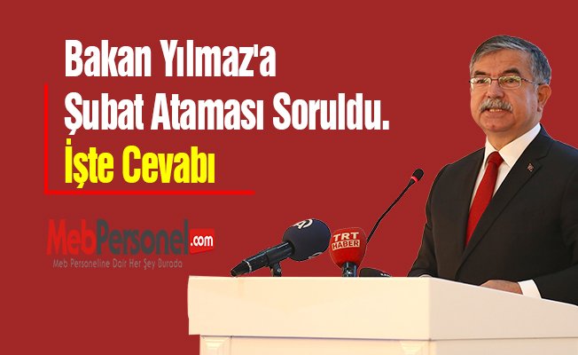 Bakan Yılmaz, güncellenen öğretim programları taslağını tanıttı. Bu tanıtım sırasında Bakan Yılmaz’a Şubat ataması soruldu. Bakan İsmet Yılmaz Şubat öğretmen atamaları konusunda şu cevabı verdi: