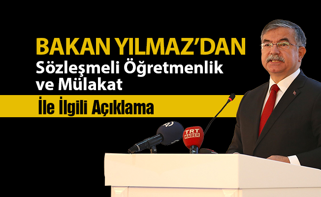 Bakan Yılmaz’dan sözleşmeli öğretmenlik ve mülakat açıklaması. Bakan Yılmaz mülakat sorusunu cevapladı. Milli Eğitim Bakanı İsmet Yılmaz önceki gün Genel Kurul MEB bütçe görüşmelerinde MHP Grup Başkanvekili Erkan Akçay’ı öğretmen mülakatları ile ilgili sorusunu cevapladı. İşte Bakan Yılmaz’ın mülakat sorusuna verdiği o cevap: