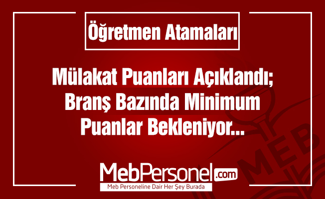 Milli Eğitim Bakanlığı(MEB), 20.000 öğretmen ataması için bugün sabah saatlerinde mülakat puanlarını açıkladı. Öğretmen adayları, mülakat puanlarını MEB’in resmi web sitesi olan meb.gov.tr’den öğrenebiliyor.