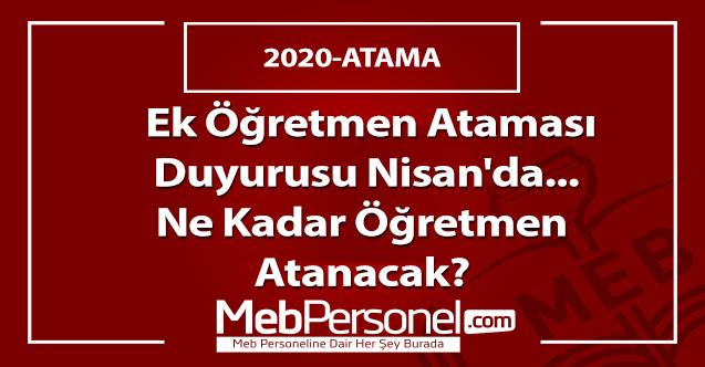 Ek Öğretmen Ataması Duyurusu Nisan’da… Ne Kadar Öğretmen Atanacak?. Milli Eğitim Bakanığı 20 bin sözleşmeli öğretmen ataması için mülakatları geçtiğimiz hafta başlattı. Mülakata kontenjanın 3 katı kadar aday çağrıldı. Yani 60 bin öğretmen mülakatlakara alındı.20 bin sözleşmeli öğretmen atamasının mülakat süreci devam ederken ek öğretmen ataması bekleyen öğretmen adayları MEB Genel Müdürü Sn Hamza Aydoğdu ile yine geçtiğimiz hafta görüşme gerçekleştirdi. Ayrıca Bakan Ziya Selçuk’u gittiği illerde takip eden öğretmen adayları Bakan Selçuk’a ek öğretmen ataması taleplerini bildiriyor. Bakan Selçuk ek öğretmen ataması ile ilgili çalışmalar yapıldığını bellirtti.