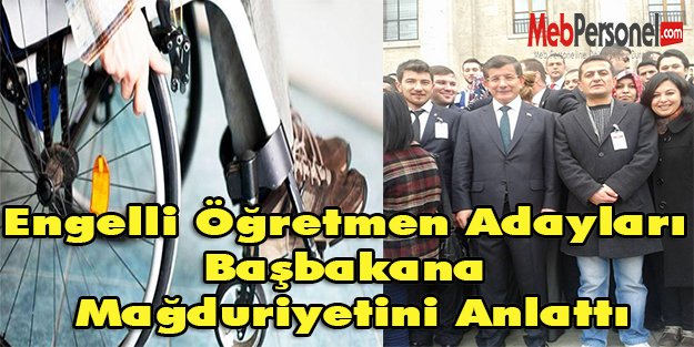 7 Kasımda yapılan Engelli öğretmen atamasının branş içi puan üstünlüğü yerine direk puan üstünlüğüne dayanması ve henüz bir ay önce ataması yapılmış aday memurlarında tercih yapabilmesi yüzünden mağdur olduklarını Başbakan Ahmet Davutoğlu’na ileten engelli öğretmen adayları mağduriyetlerinin giderilmesini istedi.Başbakan Ahmet Davutoğlu mağdur olan engelli öğretmen sayısının 300 civarında olduğunu yine engelli öğretmen adaylarından öğrenerek konuyla ilgileneceğini belirtti.Başbakanın sözleriyle heyecanlanan 300 civarındaki engelli öğretmen adayı şimdi resmi atama müjdesini bekliyor.