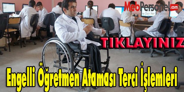 Engelli öğretmen alımları için tercihler alınmaya başlandı. Engelli öğretmen atamaları tercih sayfasına ulaşmak için tıklayınız.