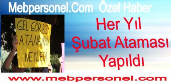 Bu konuda atama bekleyen öğretmenler bu haberimizle gerek eski Milli Eğitim Bakanı Nimet Çubukçu ve Sayın Ömer Dinçer tarafından bir çok kere öğretmen ataması yapılmacağı kesin bir diller söylenmişşede şubat ataması her sene yapılmıştır. Şubat 2013 te Atama bekleyen öğretmenler mücadelelerine daha büyük bir azimle devam etmelidirler.