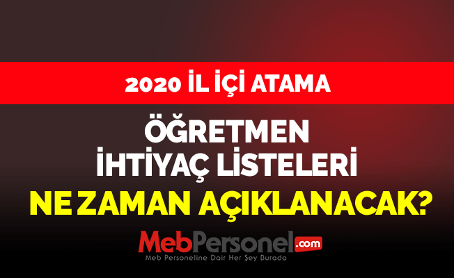 İl içi yer değiştirmelerde boş kadrolar ne zaman yayımlanacak? 2020 il içi atama öğretmen ihtiyaç listeleri ne zaman açıklanacak? Detaylar Mebpersonel.com’da…