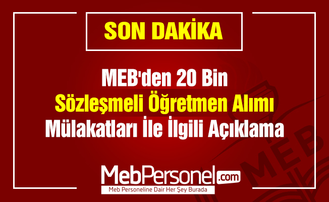 Milli Eğitim Bakanlığı, 20 bin sözleşmeli öğretmen alımı sözlü sınavına ilişkin açıklama yaptı.