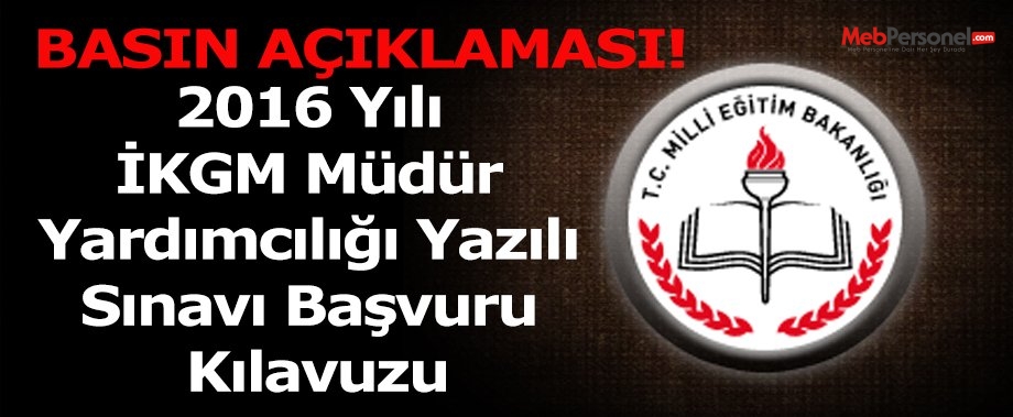 2016 Yılı İKGM Eğitim Kurumları Müdür Başyardımcılığı ve Müdür Yardımcılığı Yazılı Sınav Başvuru Kılavuzu yayınlandı.