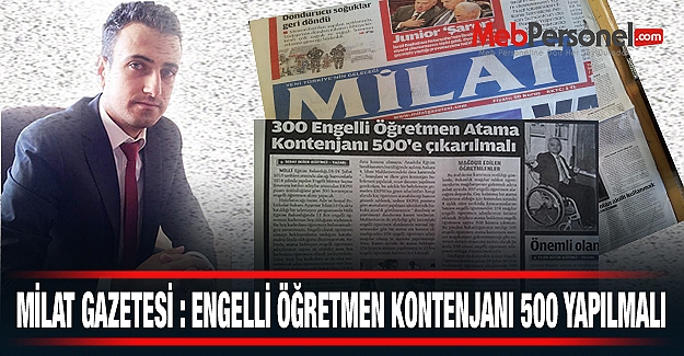 MİLAT Gazetesi,300 Engelli Öğretmen Atama Kontenjanını 500’e Çıkarılmalı