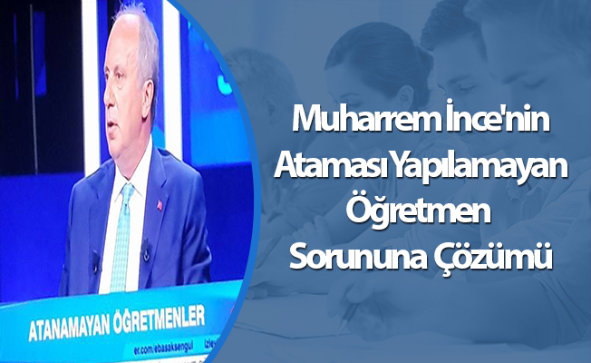 Cumhurbaşkanı adayı Muharrem İnce öğretmen atamaları  ile ilgili canlı yayında vaatlerini açıkladı. Cumhurbaşkanı adayı Muharrem İnce’nin Ataması Yapılamayan Öğretmen Sorununa Çözümü. Cumhurbaşkanı adayı Muharrem İnce dün akşam CNNTURK’te basın mensuplarının seçim vaatleri ile ilgili sorularını yanıtladı. Kendisine yöneltilen atama bekleyen öğretmenler sorusuna Muharrem İnce’nin cevabı ise şu şekilde idi: