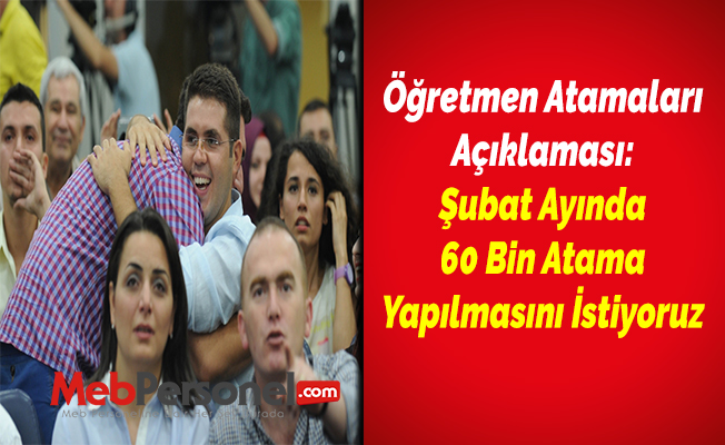 Geylan, “Sayın Ziya Selçuk Ekonomi Bakanı değil, Milli Eğitim Bakanı’dır. Dolayısıyla kabinede öğretmenler adına biraz daha talepkâr olması gerekir. Türk Eğitim-Sen olarak 60 bin ilave öğretmen ataması talebimiz var. 2020 yılında sadece 20 bin sembolik atama yapılmamalıdır. Hükümetten, Şubat ayında 60 bin atamanın gerçekleştirilmesini, Sayın Milli Eğitim Bakanı Ziya Selçuk’tan da bir öğretmen olarak hükümetten daha talepkâr olmasını bekliyoruz” dedi.