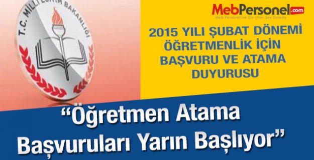 2015 YILI ŞUBAT DÖNEMİ ÖĞRETMENLİK İÇİN BAŞVURU VE ATAMA DUYURUSU