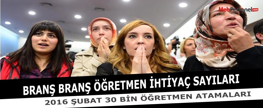 2016 Şubat Öğretmen Atamaları – Branş Branş Öğretmen İhtiyaç Sayıları. 2016 Şubat ayında yapılacak öğretmen atamalarına sayılar günler kala öğretmen adaylarını büyük bir heyecan sarmış gibi gözüküyor. Öğretmen adayları 30 Bin Şubat ayı öğretmen atamalarında kendi branşlarına verilecek kadroları merak ediyor. 2016 Şubat ayı öğretmen atamaları için hazırlamış olduğumuz bu tabloda branş branş öğretmen ihtiyaç sayılarını bulabileceksiniz.