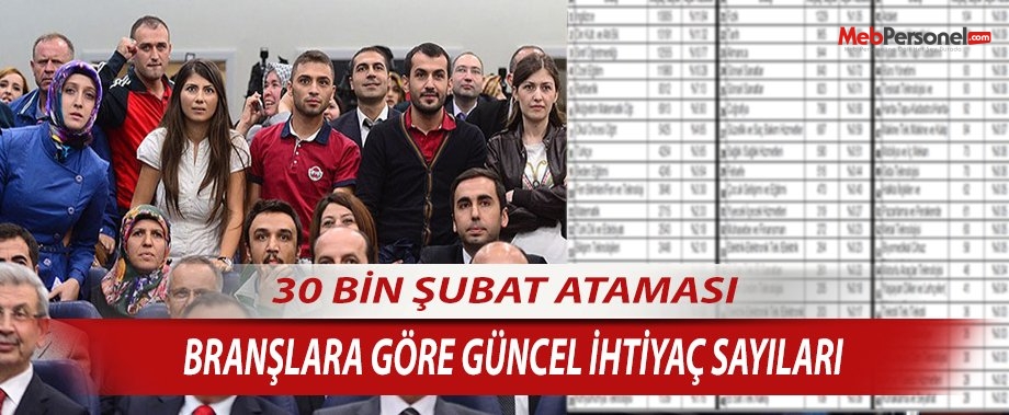 Şubat ayında yapılacak öğretmen atamaları en çok bu 20 branşa olacak. Öğretmen atamaları için 30 Bin kadro MEB’e tahsis edildi. En çok öğretmen açığı olan bu 20 branşa toplam kadronun %90’ının verileceği tahmin ediliyor.