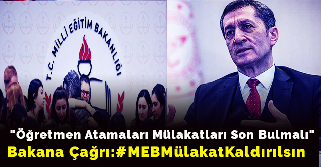 Öğretmen Atamaları Mülakatları Son Bulmalı-#MEBMülakatKaldırılsın. Sosyal medyada gündeme gelen atama taleplerini mebpersonel.net olarak sitemizde gündeme taşımaya devam ediyoruz. Öğretmen adaylarının yopun bir şekilde talep ettikleri öğretmen atamaları konusu yine mülakat oldu. Öğretmen adayları mülakatın kaldırılmasını talep ediyor. Dün twitter üzerinden başlatılan kampanyaya yoğun katılım oldu. #MEBMülakatKaldırılsın etiketi sosyal medyada trend topic olarak ses getirdi.