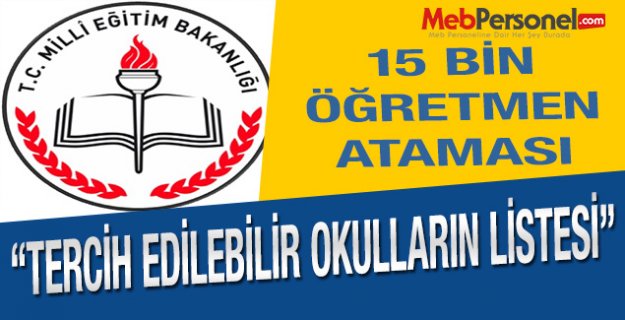15 bin öğretmen atamalarında atamalar ilkatama.meb.gov.tr adresinden yapılacak. Şu an için başvuru sayfası açılmış değil. Başvuru sayfası açılır açılmaz sizleri konuyla ilgili olarak bilgilendireceğiz. İlk atamalarda tercih edilebilecek okulların listesi de hünz yayımlanmış değil. Tercih edilebilir okulların lstesi yayınlandığı an itibariyle sitemizde aşağıda belirtmiş olduğumuz linkte olacaktır.