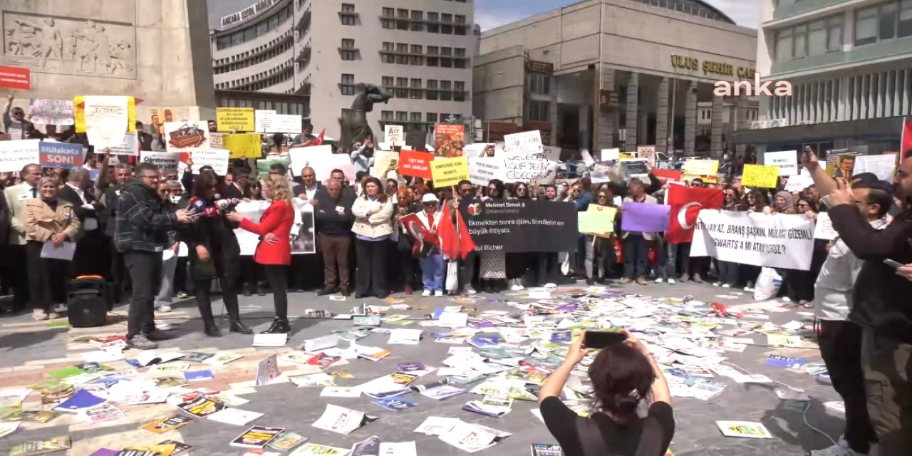 Öfke ve hayal kırıklığının somut bir ifadesi olarak, öğretmenler KPSS hazırlık kitaplarını meydanın zeminine fırlattılar.