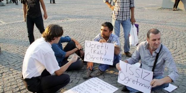 Taksim metro çıkışına gelen 3 öğretmen adayı saat 18.30 sıralarında oturma eylemi yapmak istedi. Atanamayan öğretmen Özgür Karahan, Engin Yılmaz ve Murat Özbek İşsiz öğretmen Ücretli öğretmen yazılı pankart açarak oturma eylemi yapmak istedi. Öğretmen adayları polis tarafından eyleme son vermeleri konusunda uyarıldı. Oturma eylemine devam eden 3 öğretmen adayı polis tarafından gözaltına alınarak Taksim Polis Merkezi’ne götürüldü.