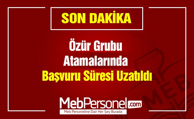 MEB tarafından yayımlanan özür grubu atama takvimine göre başvurular bugün sona eriyordu. MEB tarafından yapılan son dakika açıklamasına göre başvuru süresi uzatıldı.