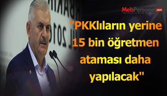 “PKKlıların yerine 15 bin öğretmen atamaları daha yapılacak” Başbakan Binali Yıldırım: Başbakan Yıldırım, terör örgütüyle ilişkili olduğu tahmin edilen öğretmenlere dair, “Tedbir olarak üzerinde şüphe bulunan, gerekli tespitleri yapılan bütün öğretmenler açığa alınacak, yeni ders döneminde bunlara görev verilmeyecek.” dedi.