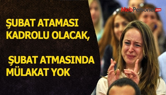 – ŞUBAT ATAMASI KADROLU OLACAK, ŞUBAT ATMASINDA MÜLAKAT YOK BU TASARI İLE İLAVE BİR ATAMA ÖNERİSİ GETİRİLİYOR. ANCAK BU ŞARTLI BİR ATAMA MODELİ